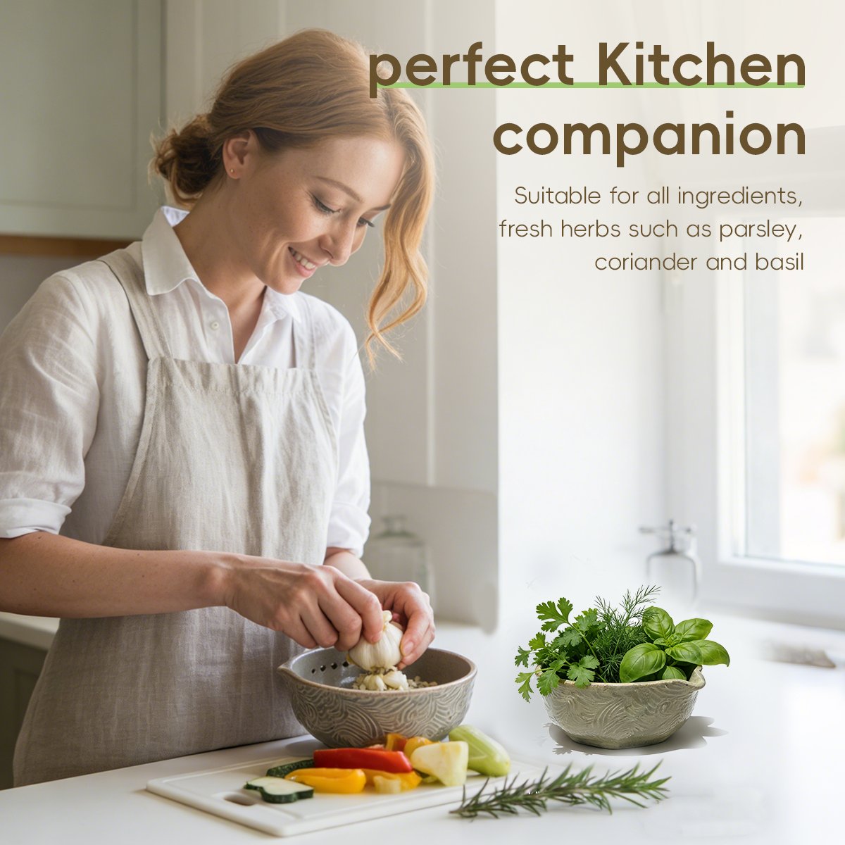🧄 Multi-Functional Design: This bowl isn’t just for herbs! It features a built-in garlic grater that allows you to effortlessly grate garlic straight into your bowl, perfect for sauces, marinades, and dressings. Plus, it’s great for chopping fresh herbs, making it an essential tool for every cook.